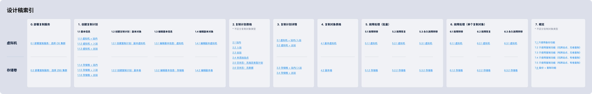Since version 2.0, we needed to build asynchronous replication, cross-site disaster recovery, volume replication support, and failover testing from the ground up. As the sole designer for the Backup & Disaster Recovery product line, I was responsible for designing this entire complex feature set.
