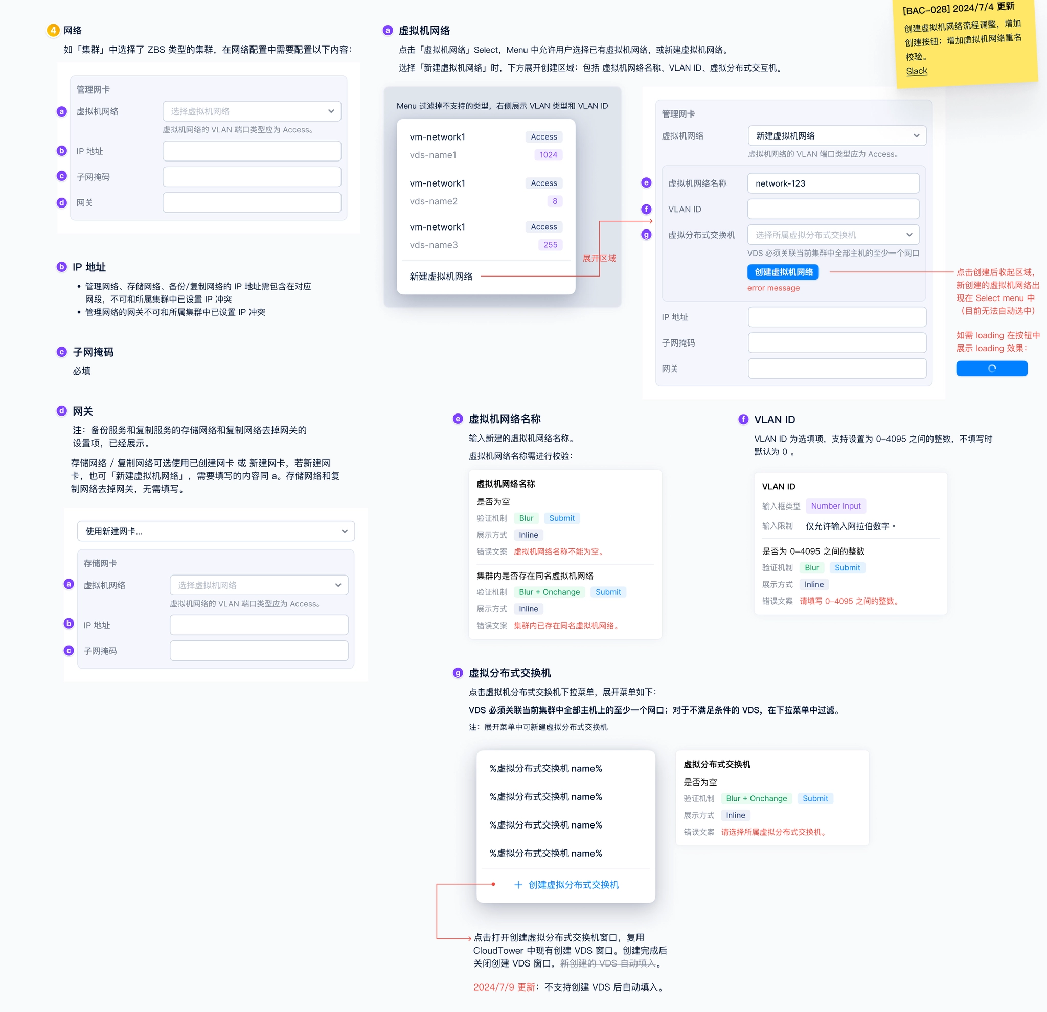 This was probably the most time-consuming step and the one that required the greatest attention to detail. I wrote detailed design specifications for every component across each newly introduced UI screen, covering interaction behaviors, value ranges, default states, dependencies between components, relationships to resource states, and how the system should respond to cluster or service exceptions. Everything needed to be clearly documented in the UI spec so the design could be handed off to engineering for implementation.