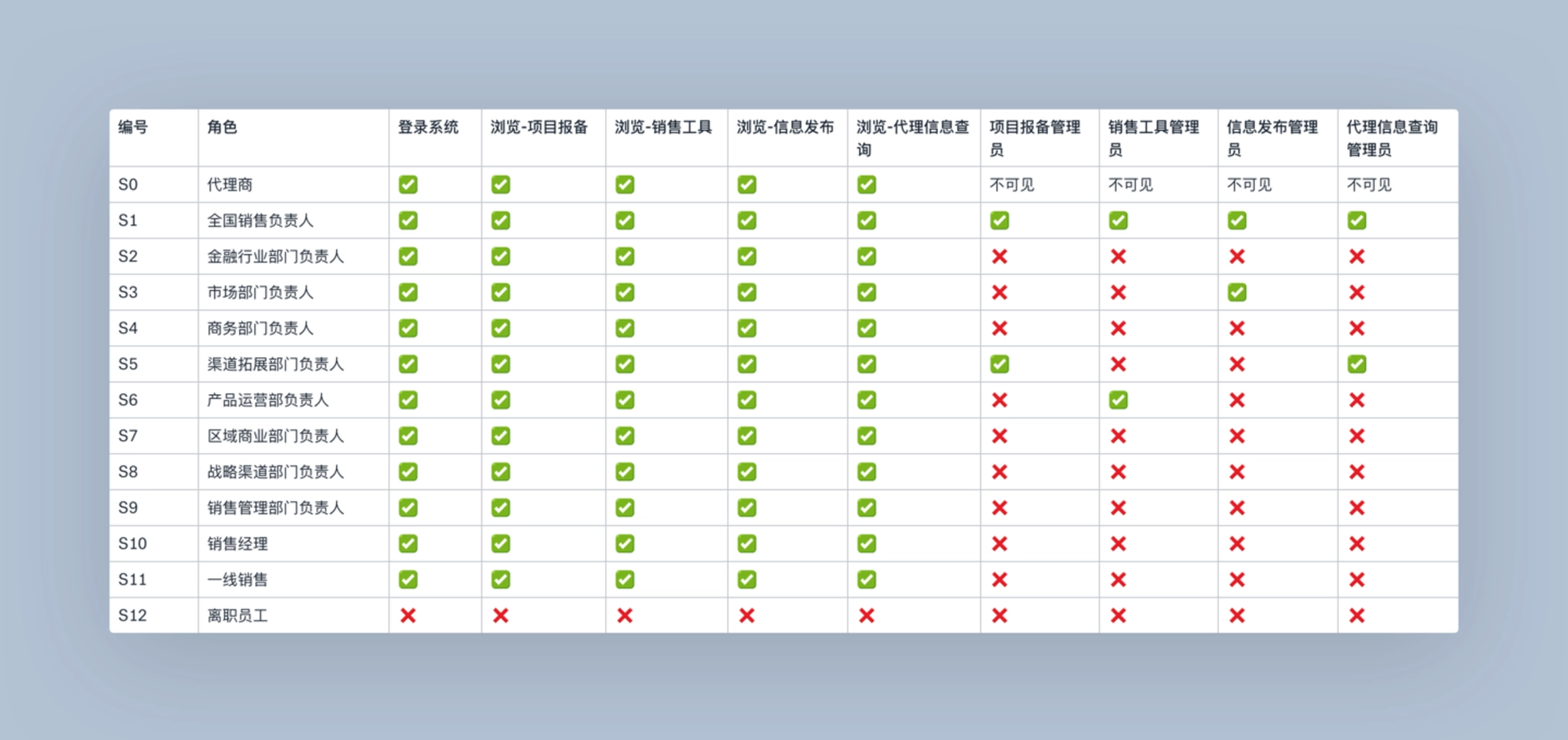 The product would be used by both internal users and external users. After making several calls with client, we made a list about all the roles involved in and their permissions. The list included distributors, sales, managers of each department and employees who had resigned.