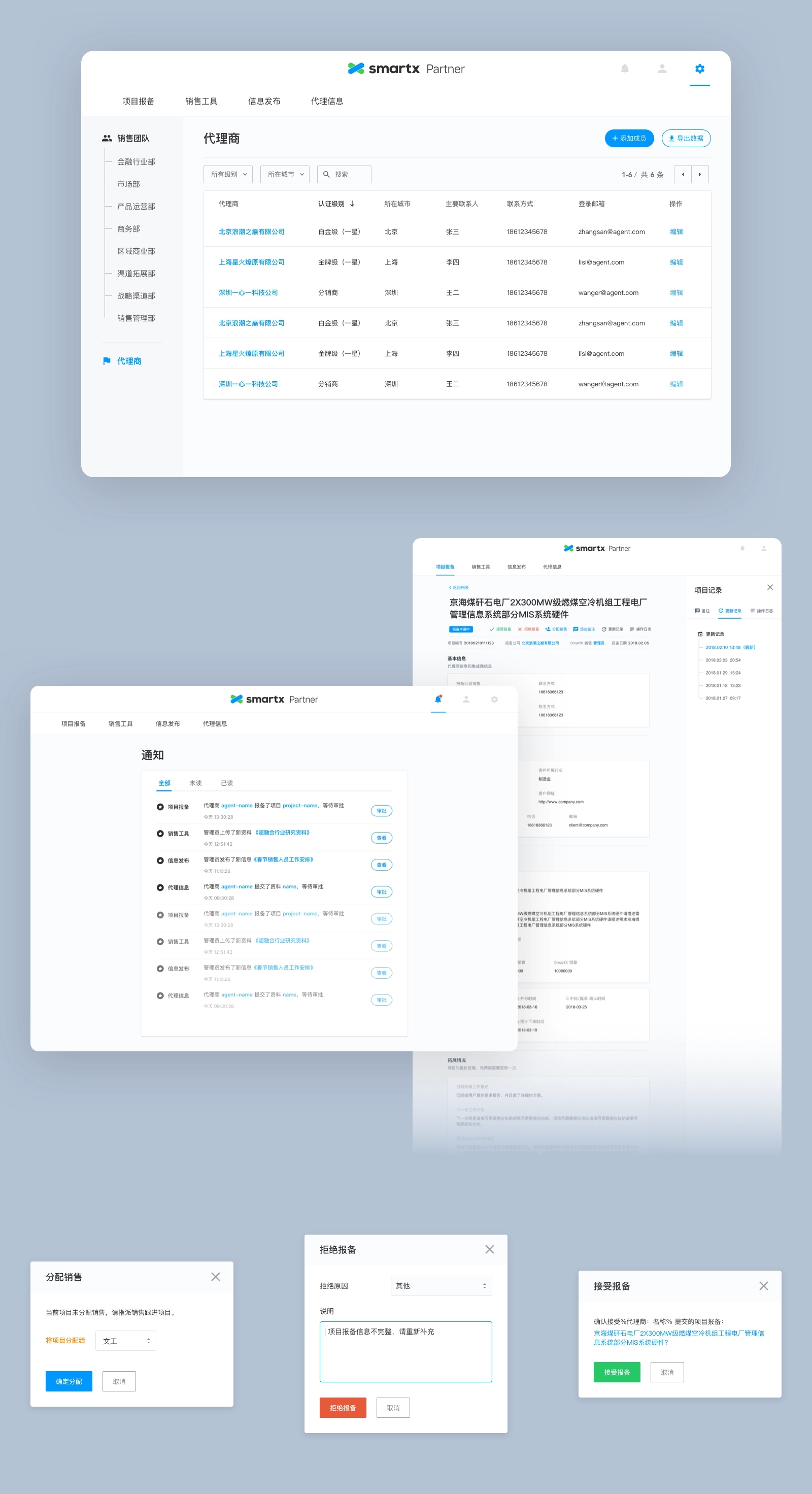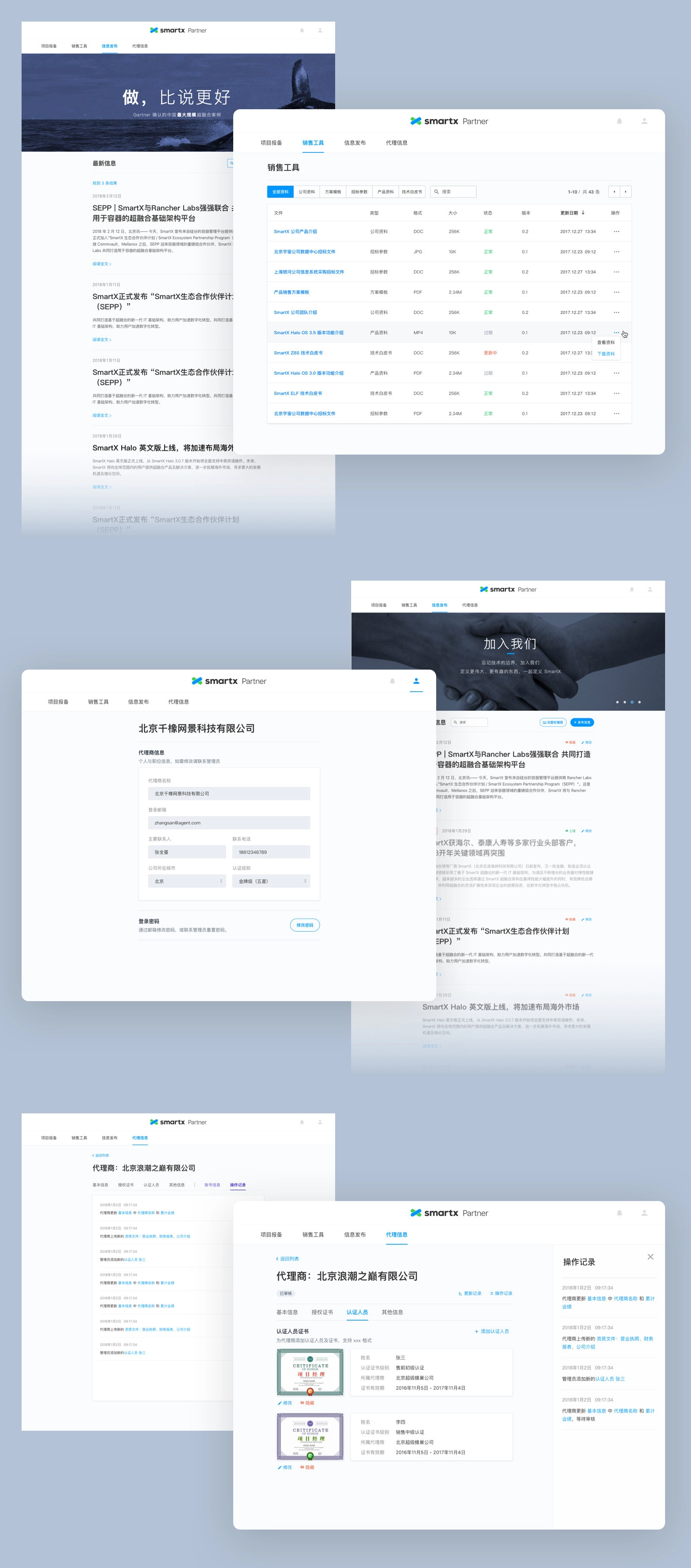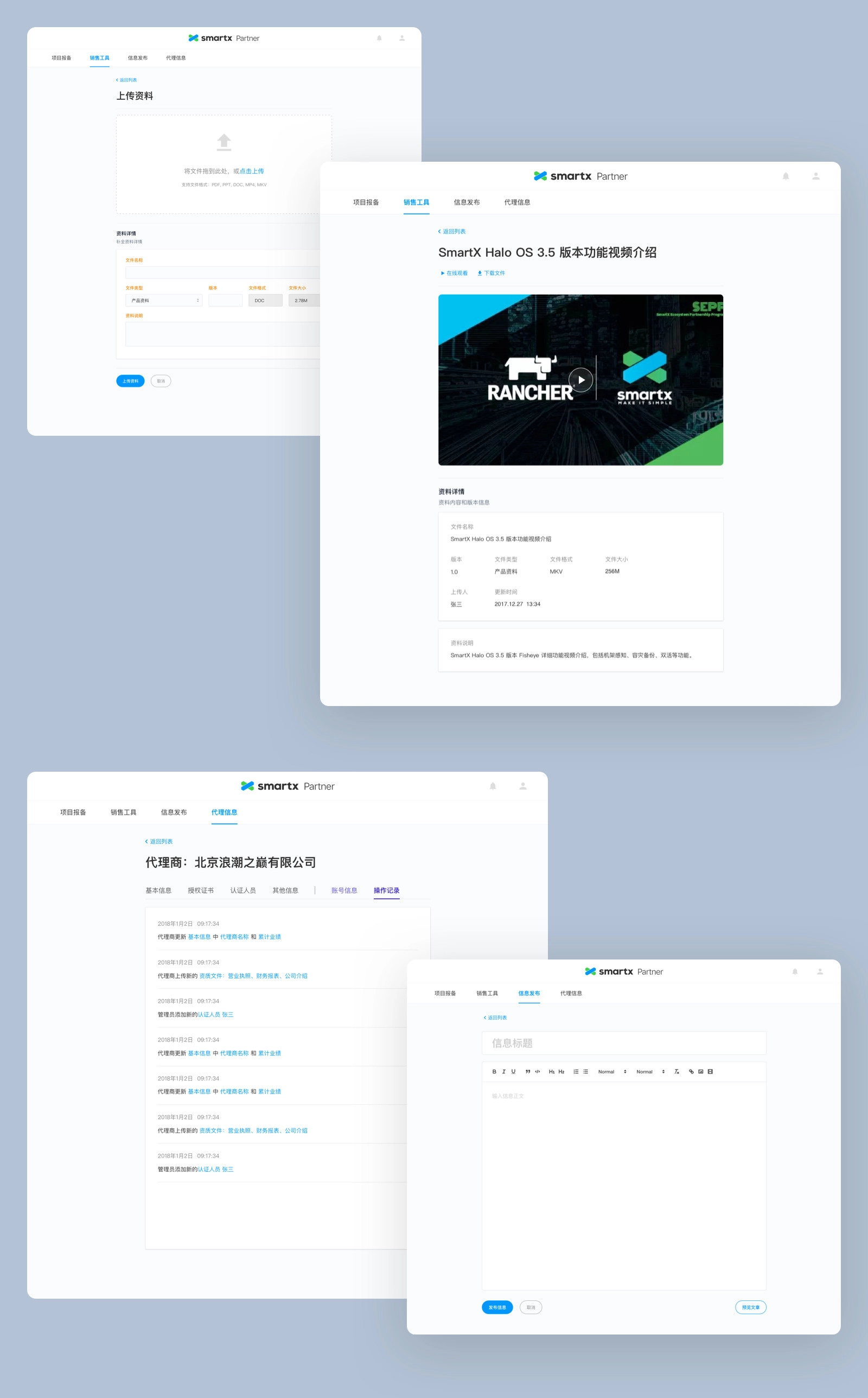 SmartX Partner Portal is a web application built for the sales team at SmartX and their partners. It's designed for helping company improve internal and external communication effectiveness. It helped sales team track potential business opportunities and share product and sales resources with partners.
