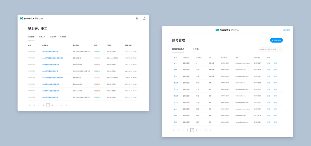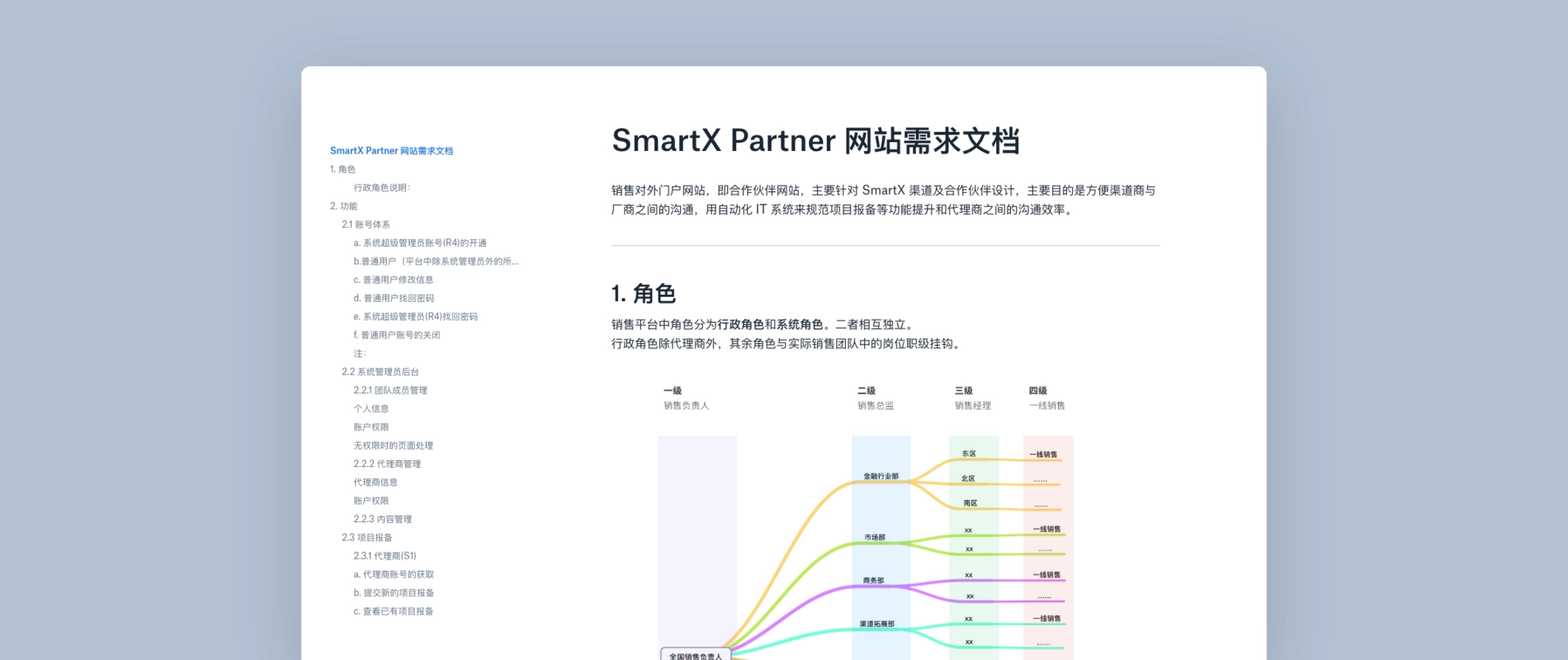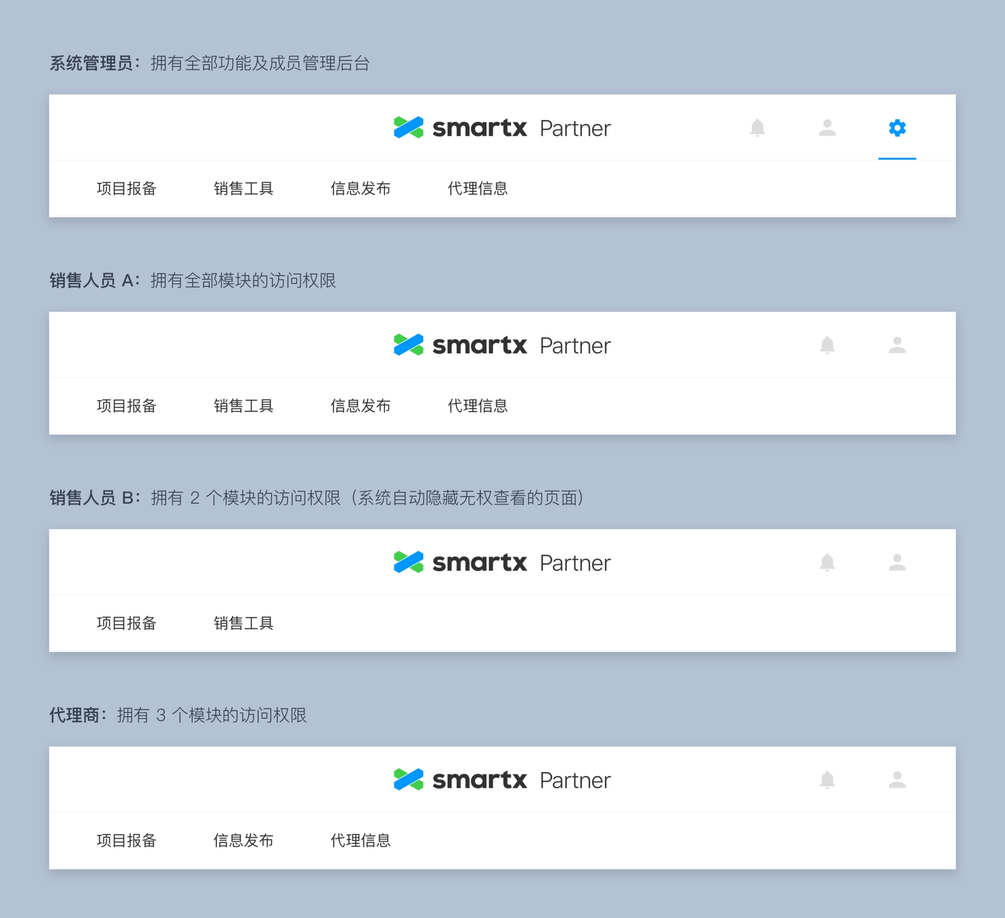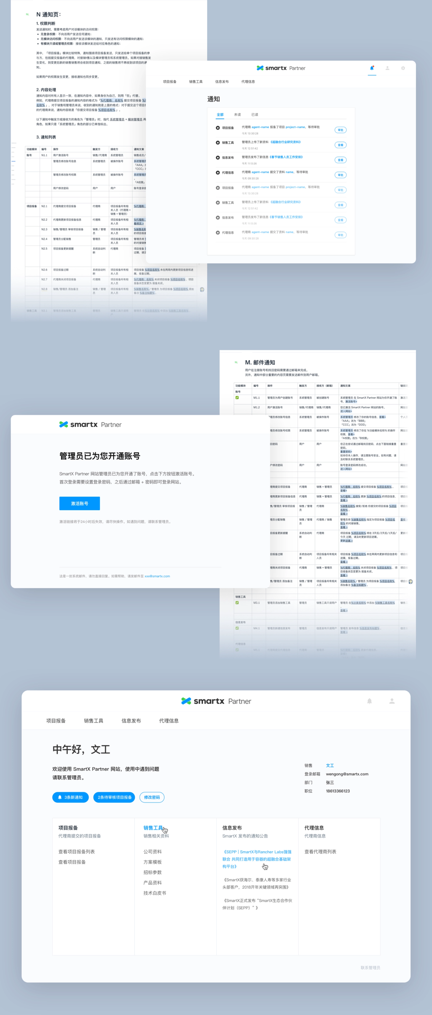 SmartX Partner Portal would be used by both internal users (sales team) and external users (partners). These two kinds of users played different roles in the product, they had different permissions and user flows.